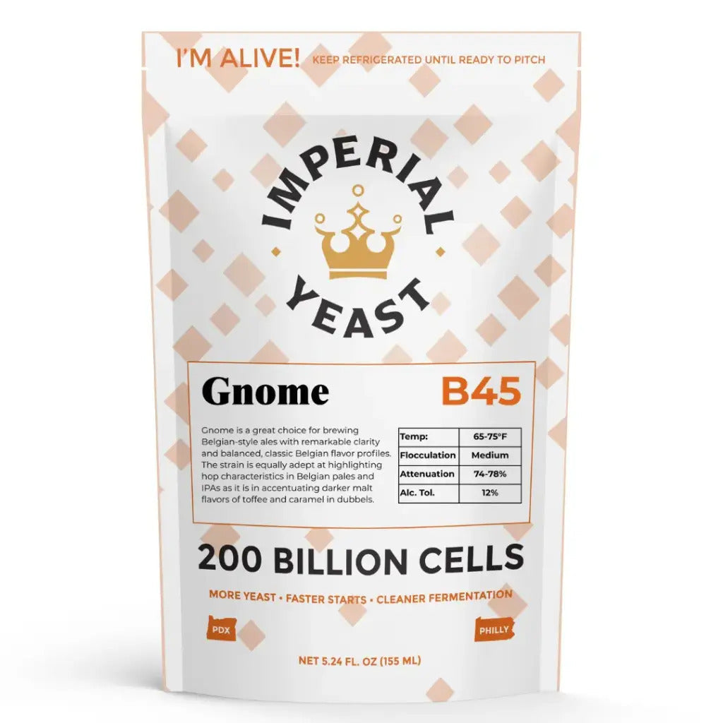Gnome is a fast-working Belgian ale yeast that produces bright, clear beers without the need for filtration. This highly flocculent strain drops out quickly after fermentation, leaving behind a clean presentation with a refined balance of delicate fruit esters and subtle spicy phenolics.